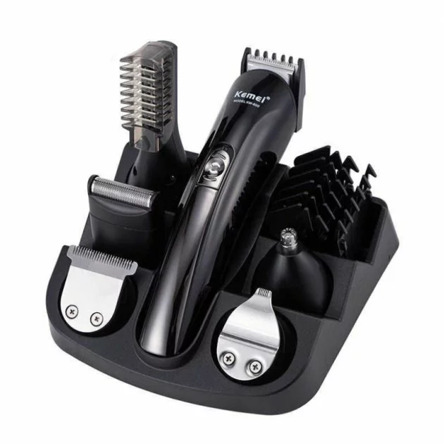 Акумуляторна бездротова машинка - триммер для стрижки волосся Kemei KM-600 11 в 1 з підставкою