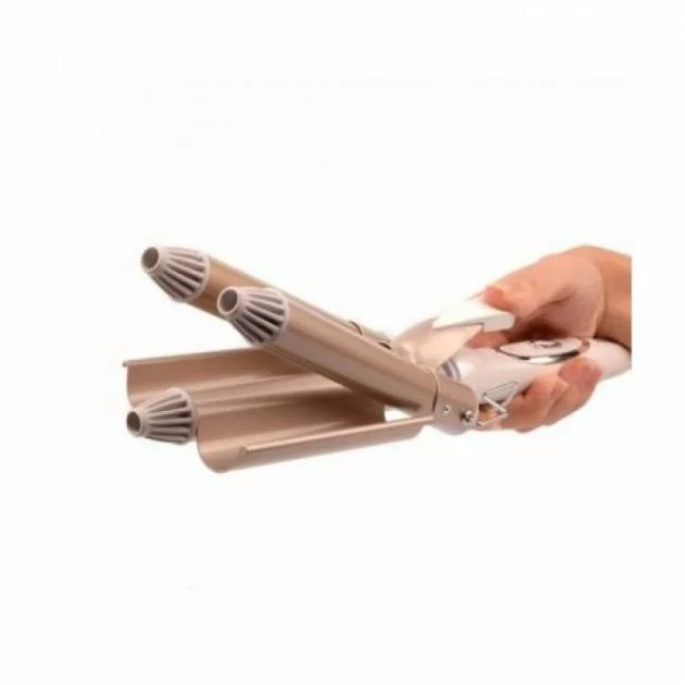 Плойка професійна потрійна + щипці для об'ємних волосся ProGemei GM-1988 Золотиста (10090)